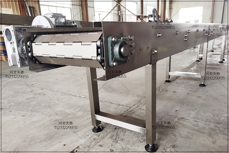 6、鏈板輸送機一般都可以直接用水沖洗或直接浸泡在水中,輸送機的每個部位清潔方便,能實現(xiàn)食品、飲料行業(yè)對衛(wèi)生環(huán)境的要求;