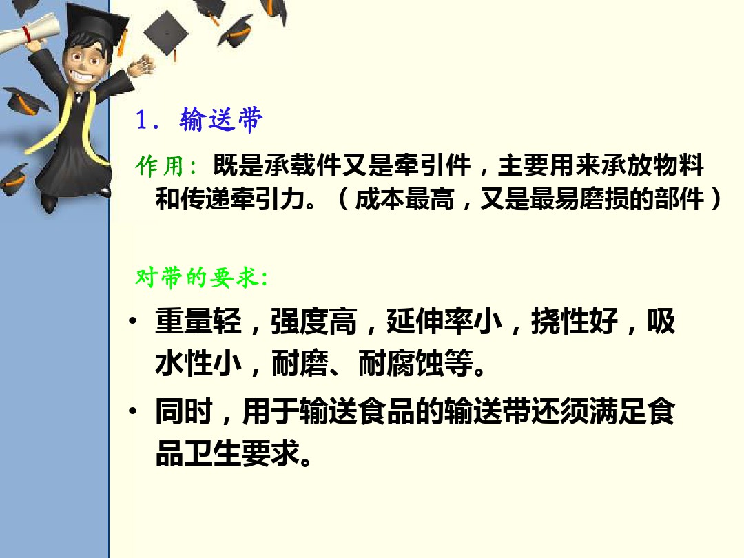 用于輸送食品的輸送帶還須滿足食 品衛生要求。