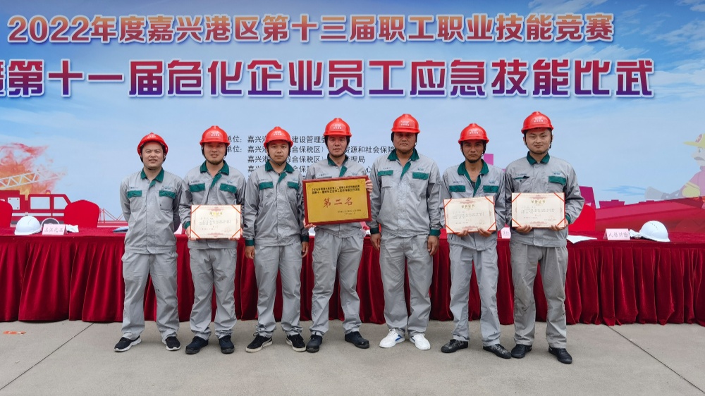 6月23日,嘉興港區2022年度第十三屆職工職業技能競賽暨第十一屆危化企業員工應急技能比武順利舉行。嘉興港區管委會領導,應急管理局、人力社保局、總工會、消防救援大隊、應急響應中心、中國人保港區支公司等部門、單位負責人蒞臨觀摩。在與37支企業代表隊的角逐中,浙江信匯代表隊以敢打敢拼、精誠合作的團隊精神奪得團體總分第二名。