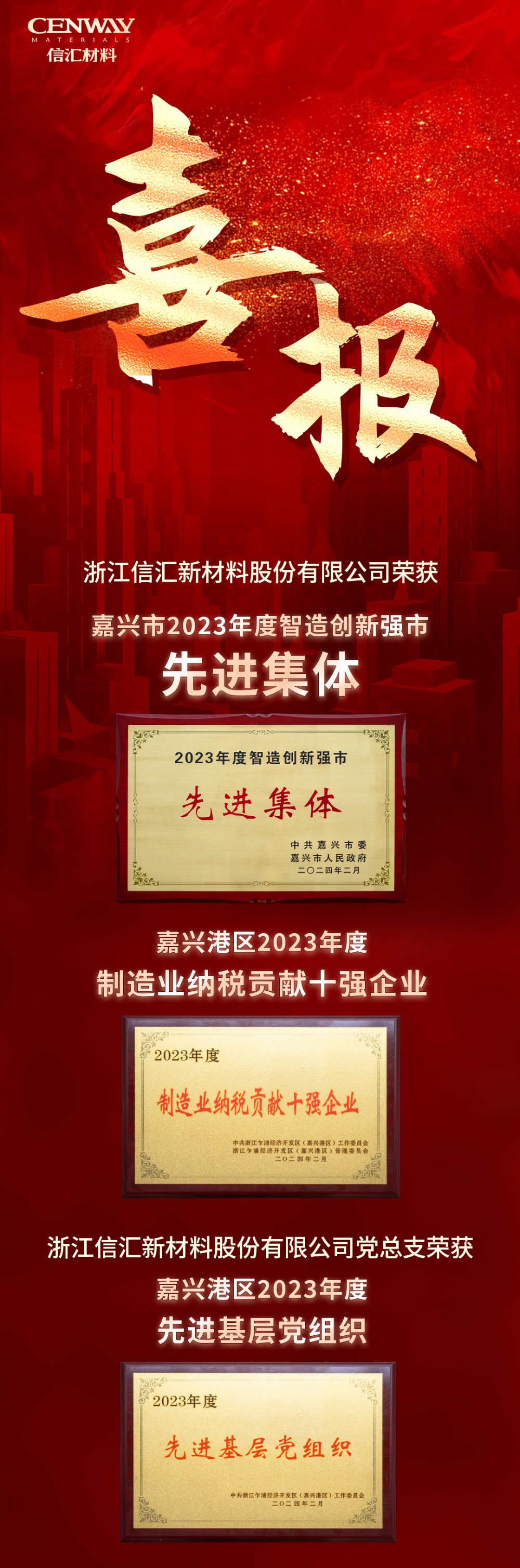 2月19日上午,嘉興召開全市三級干部大會,會上通報表彰了2023年度推進(jìn)智造創(chuàng)新強(qiáng)市先進(jìn)集體和先進(jìn)個人。當(dāng)天下午,浙江乍浦經(jīng)濟(jì)開發(fā)區(qū)(嘉興港區(qū))召開三級干部大會,會議對2023年港區(qū)各個條線涌現(xiàn)出的先進(jìn)集體和先進(jìn)個人進(jìn)行了通報表彰。在當(dāng)天市、區(qū)兩級會議上,浙江信匯新材料股份有限公司榮獲多項榮譽(yù)。 珍惜榮譽(yù),砥礪前行,浙江信匯將堅持“客戶價值驅(qū)動,應(yīng)用場景支撐”的創(chuàng)新理念,不斷開拓進(jìn)取,在創(chuàng)新中擘畫新藍(lán)圖,取得新突破,譜寫新篇章。