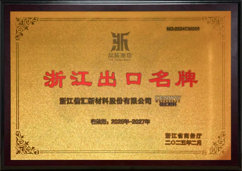 喜報 | 信匯材料榮獲“浙江出口名牌”稱號